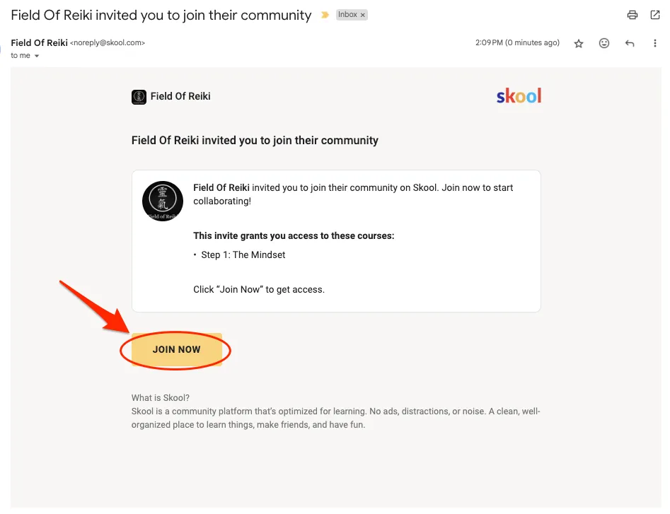 STEP 2: Find the email from Field Of Reiki with the subject line 'Field Of Reiki invited you to join their community.' (It might take a few minutes for the email to arrive.)